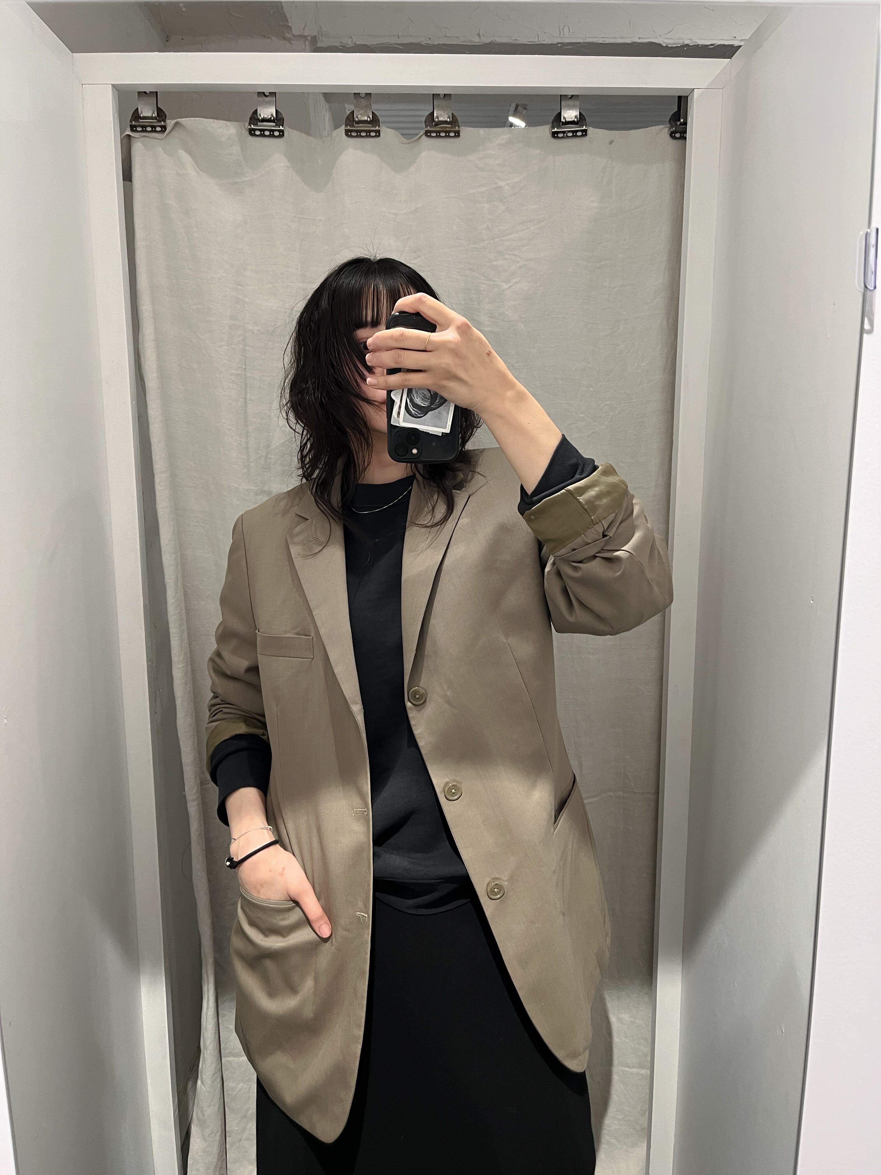 beige wool long tailored jacket