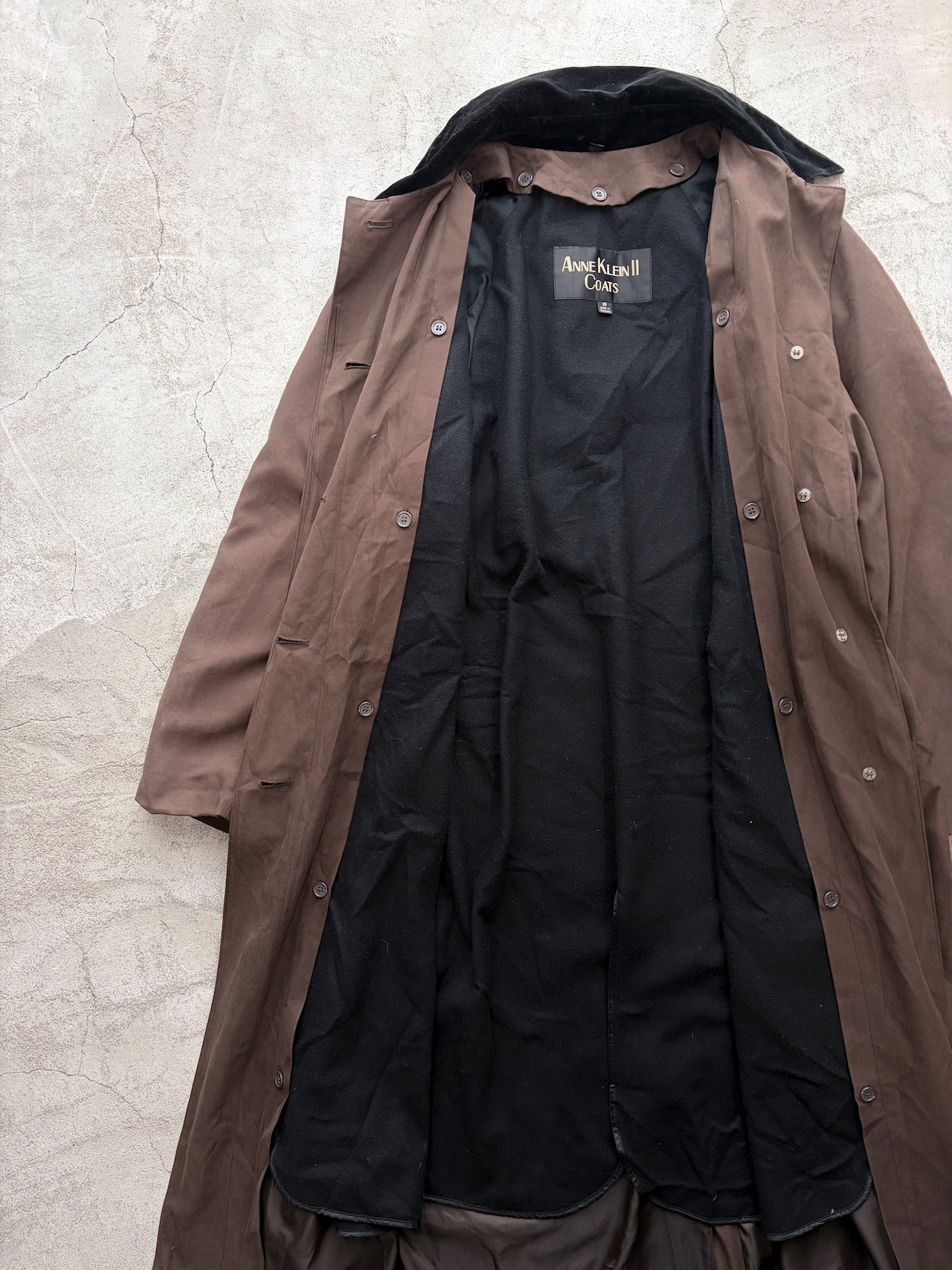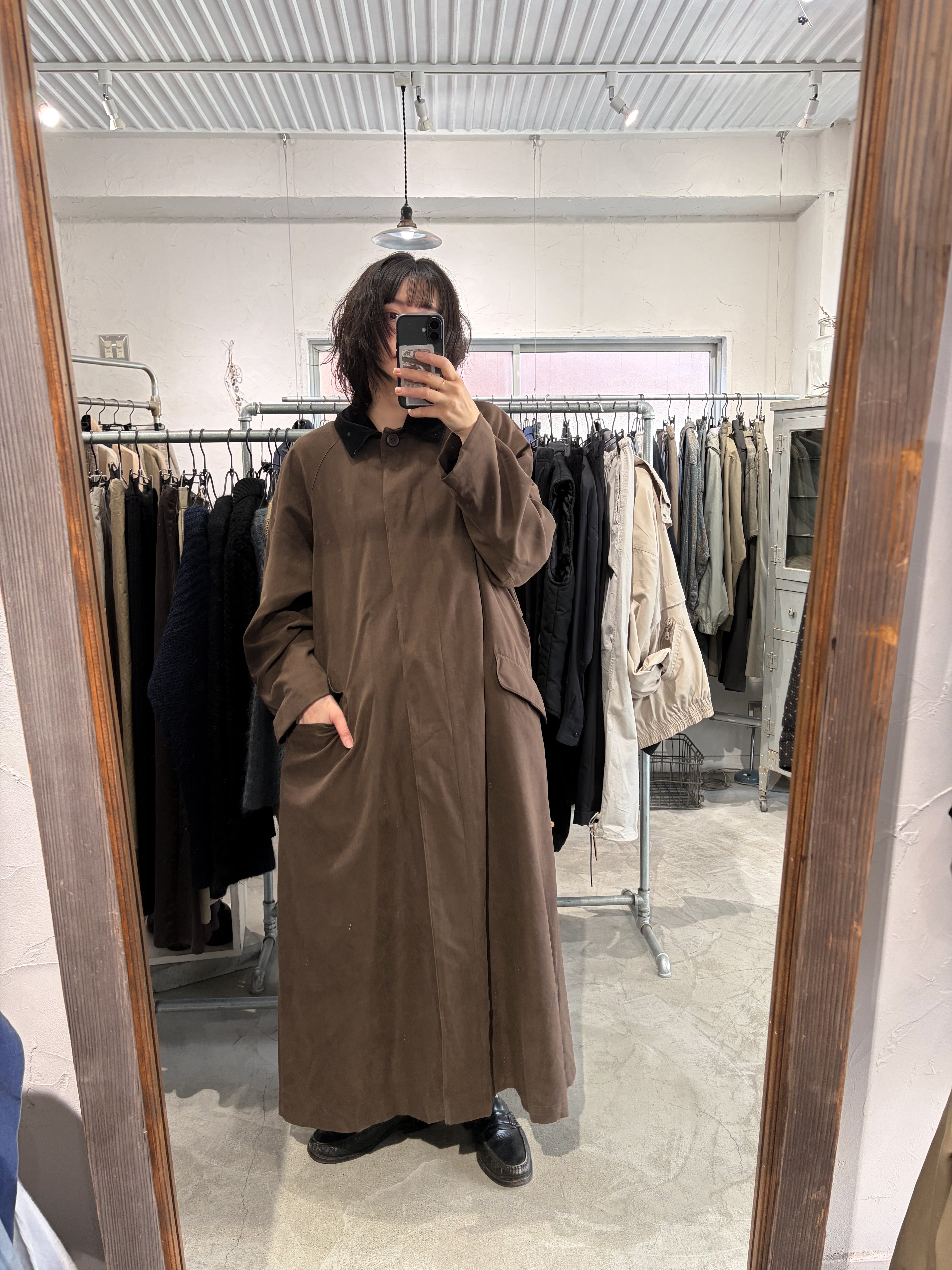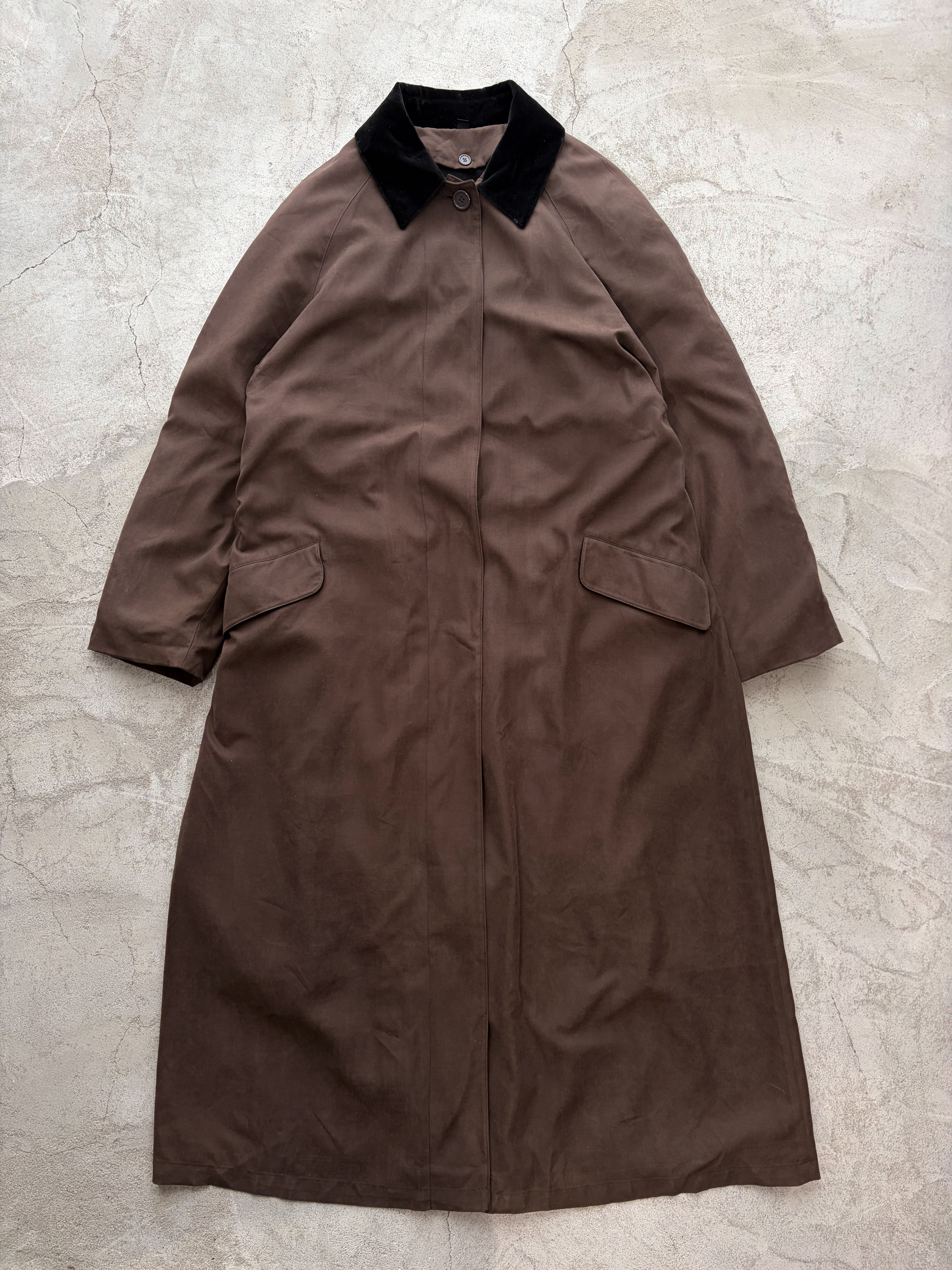 brown velours collar long coat