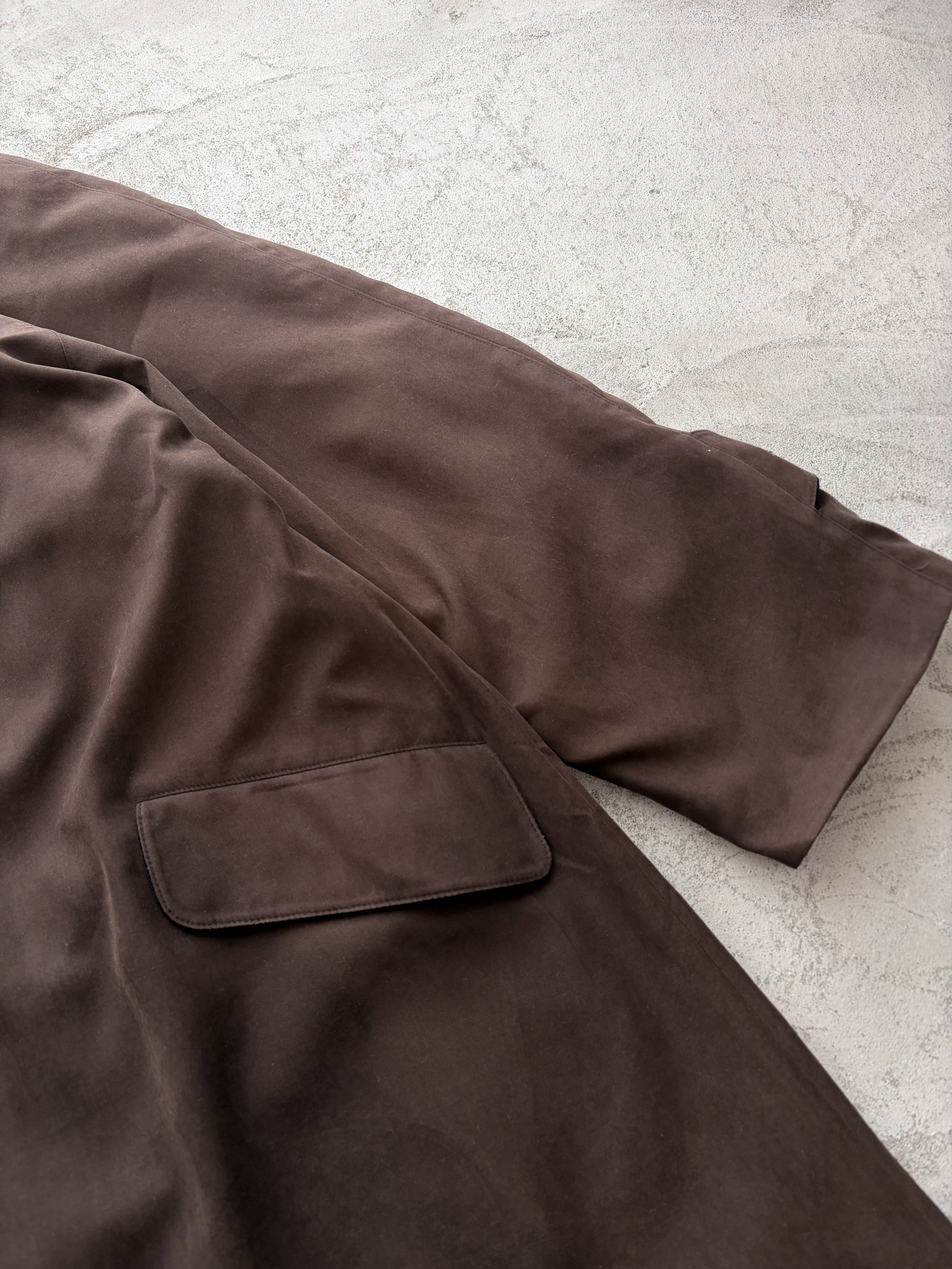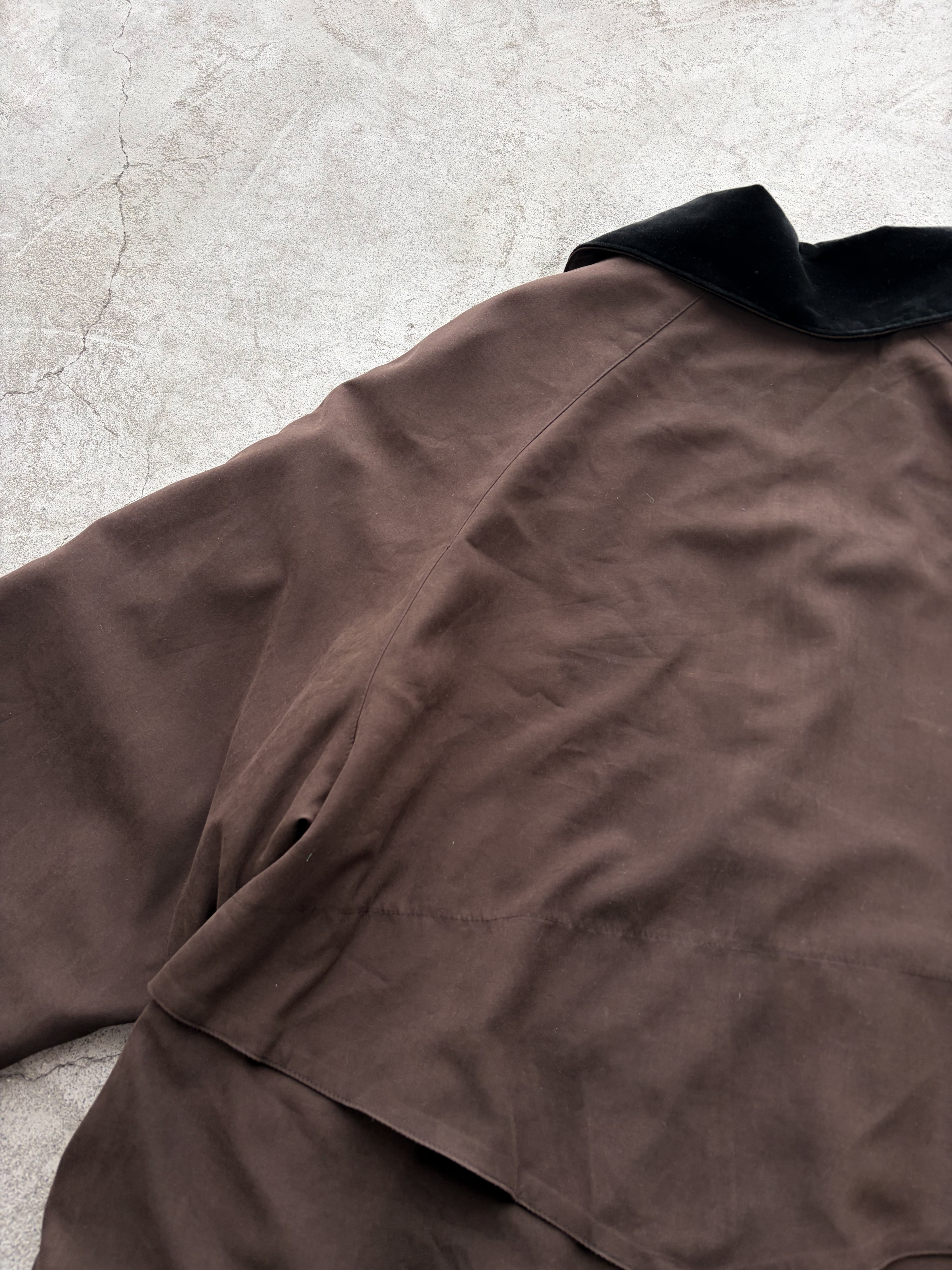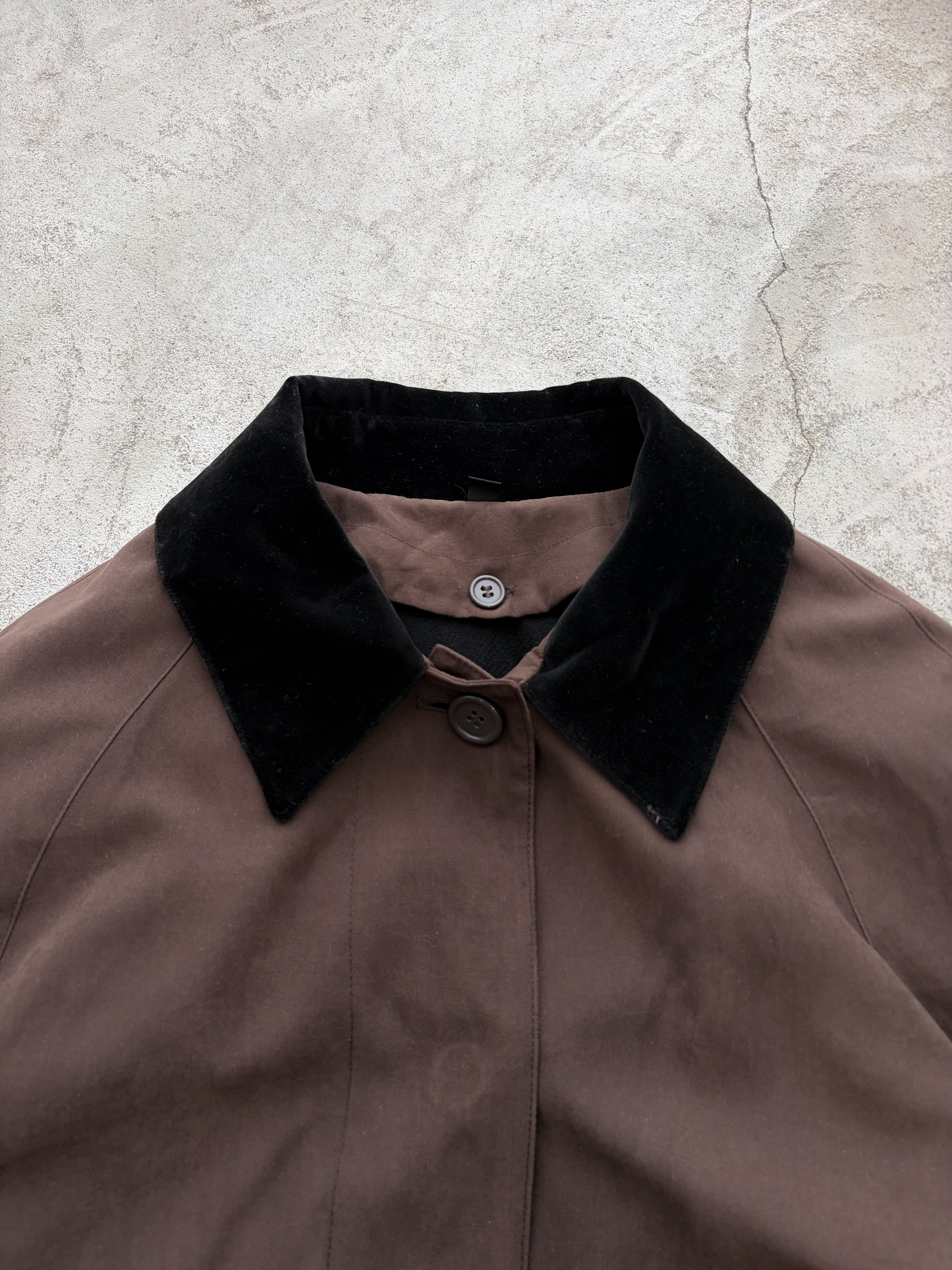 brown velours collar long coat