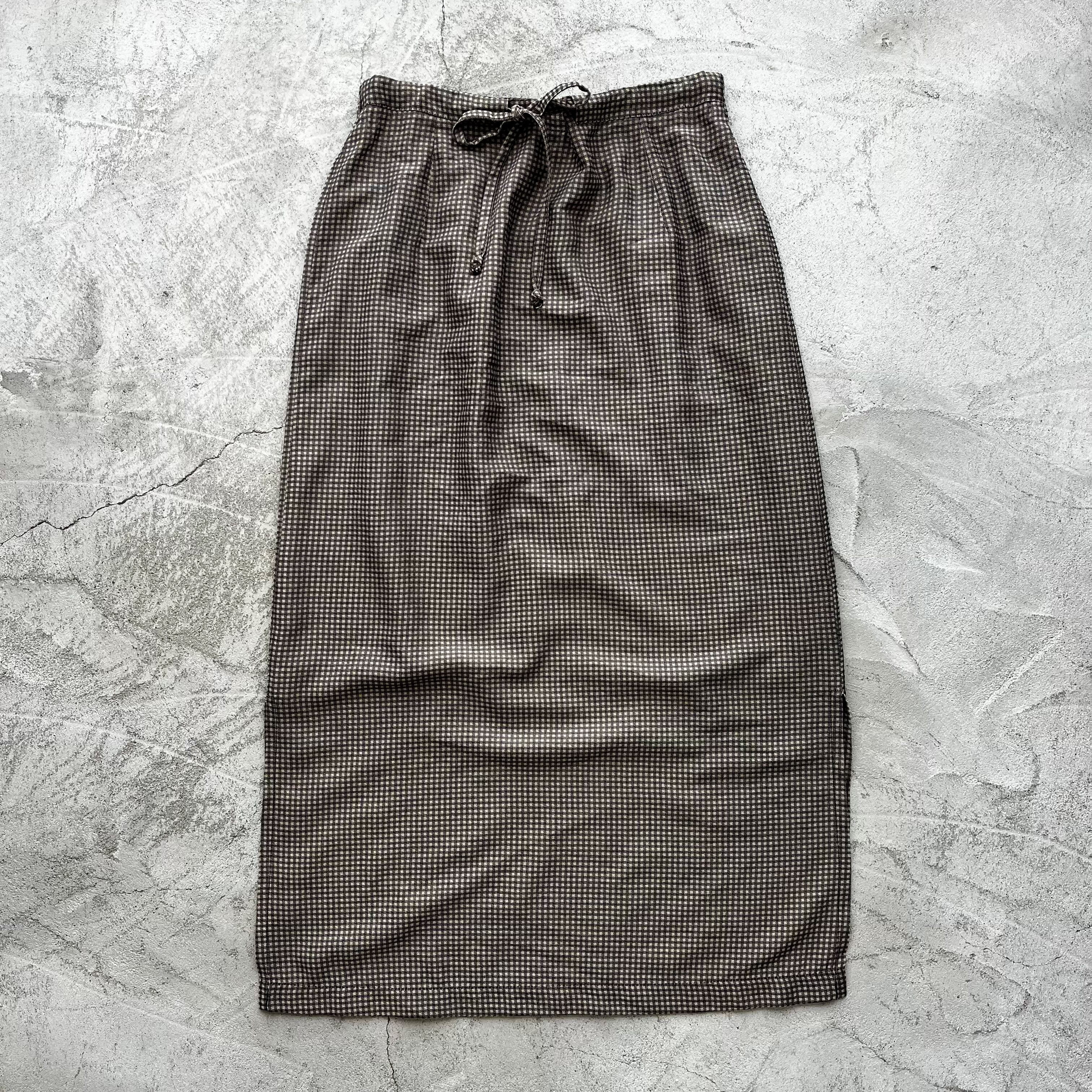 brown plaid rayon slit skirt